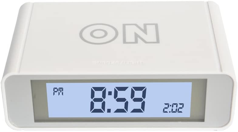 CLICK TO BUY This alarm clock is amazing! It is important to get up on one’s own. Mitchell is working on it. This alarm turns off by simply turning it over. No fiddling, no levers. When my alarm clock goes kerplunk, I am getting one of these for me too.